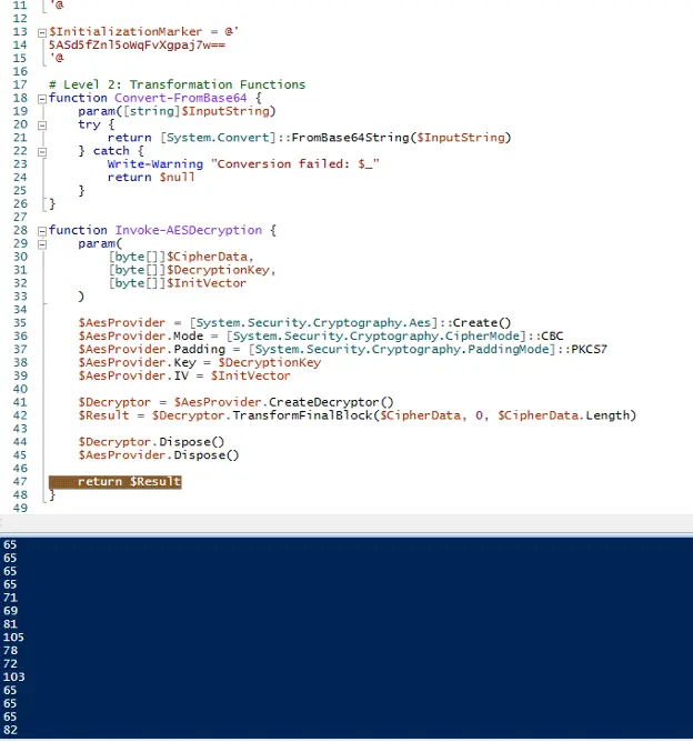 PowerShell AES decryption routine (Source – Fortinet)