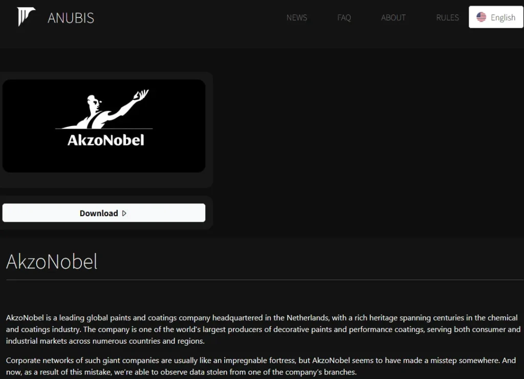 AkzoNobel confirms cyberattack at a U.S. site after Anubis leak claim