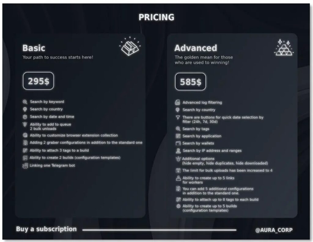 Threat actors unleashed AuraStealer, a potent new infostealer, starting in July 2025. Russian-speaking developers promote it on forums like XSS, Exploit, and others as a LummaC2 rival. It grabs data from 110+ browsers, 70+ apps, and 250+ extensions. Subscriptions run $295/month basic or $585/month advanced.