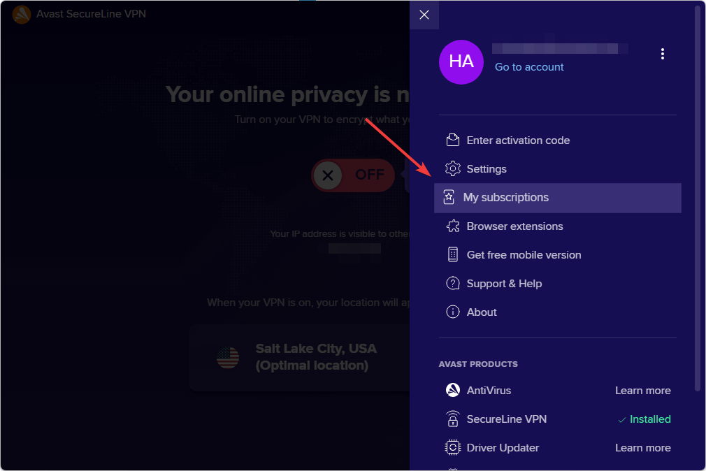 4. Click on your Avast SecureLine VPN subscription.