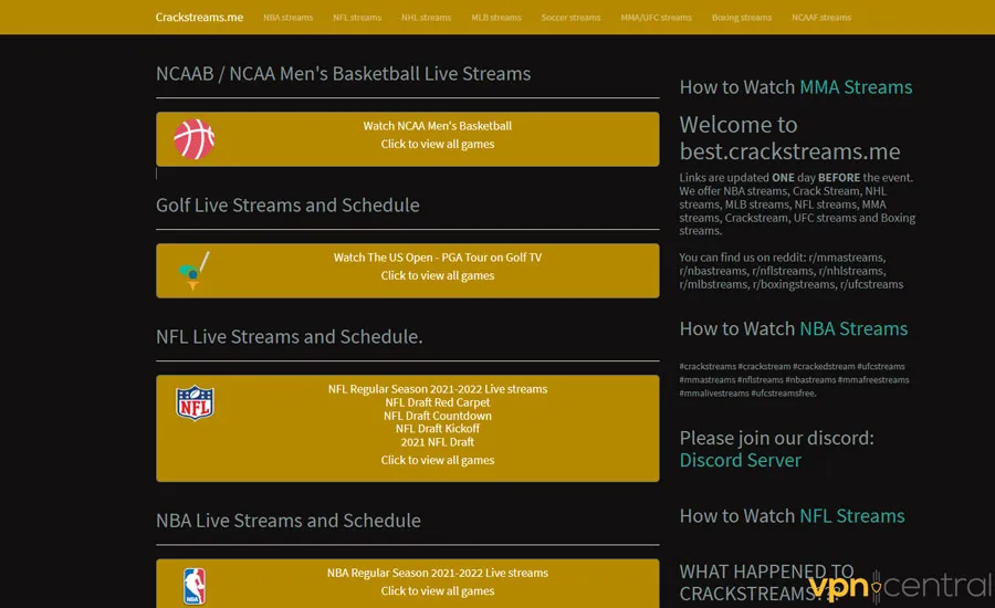 CrackStreams also requires registration for specific content, particularly older streams from its archive. Still, it remains a reliable site for accessing live events in various sports.