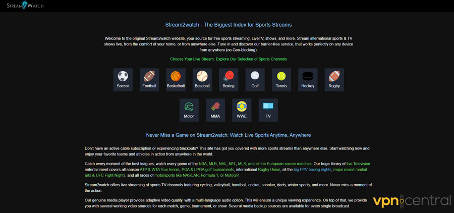 What’s more, Stream2Watch may be more complex to navigate than other similar sites.