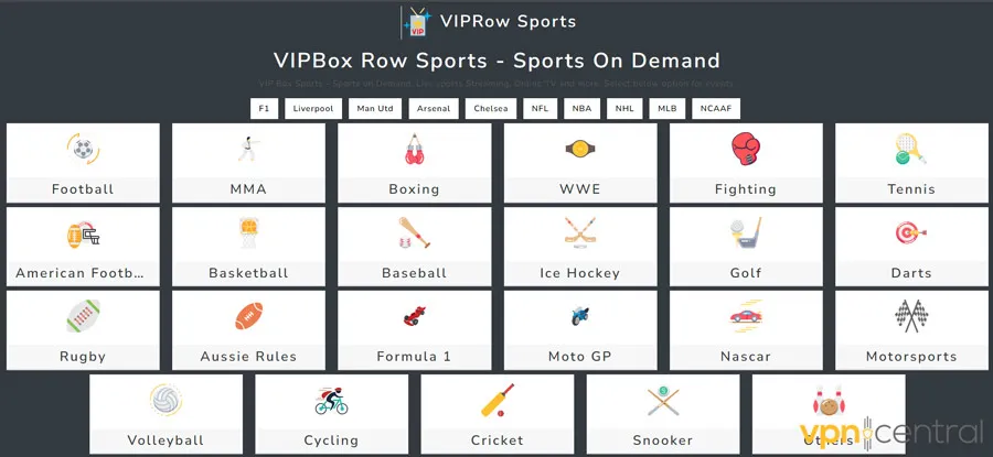VIPRow Sports is a versatile platform offering live streams of numerous events. It covers various sports, including boxing, wrestling, football, basketball, racing, golf, tennis, and rugby.