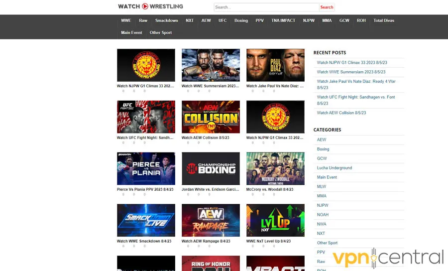 Watch Wrestling is a dedicated website for streaming combat sports. The platform provides both live streams and past events, including Pay-Per-View matches.