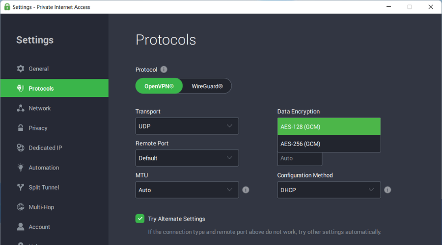 Even if there is no app on any particular platform, users can still use the Private Internet Access as it supports open-source VPN protocols like OpenVPN, WireGaurd VPN, etc. These are highly secure and reliable protocols.