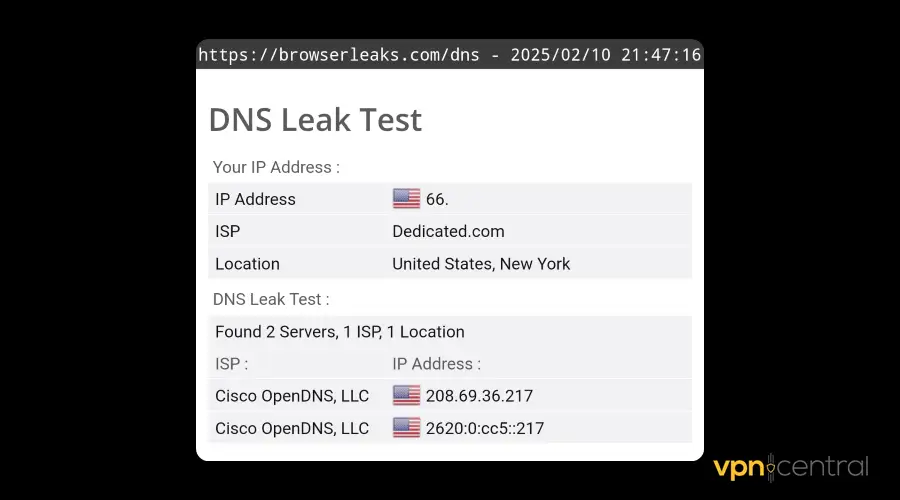 - DNS leak test: