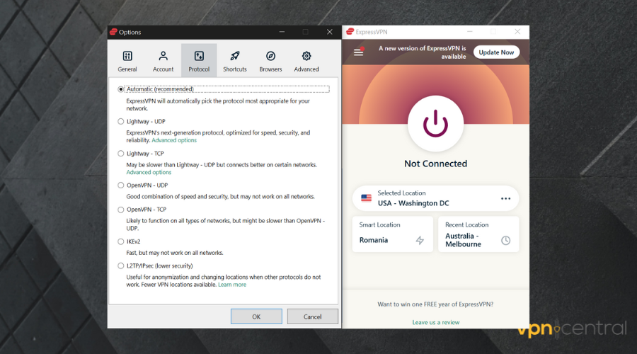 If that’s the case, just open your VPN’s configuration section, choose another protocol, re-establish the VPN connection, and try accessing the public WiFi network again.