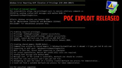 A critical local privilege escalation flaw in Windows Error Reporting (WER) service now has a public PoC exploit. Known as CVE-2026-20817, it lets low-privileged users…