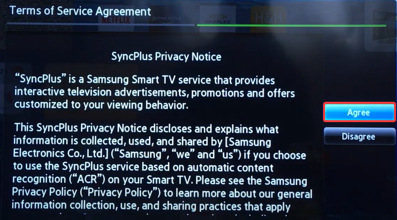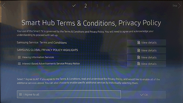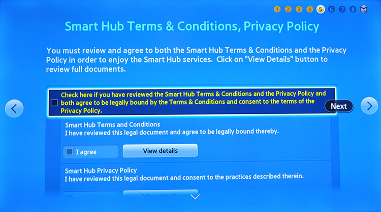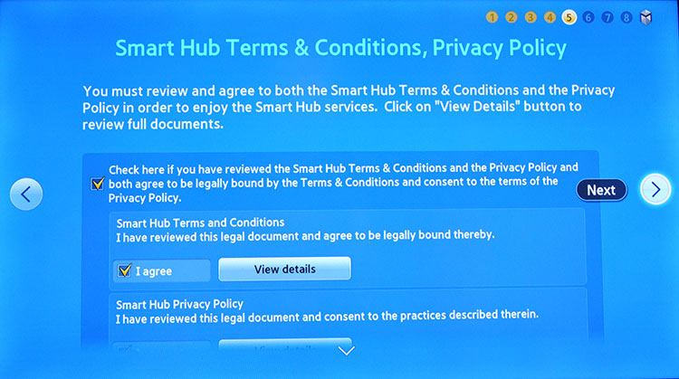 16. Agree to the Smart Hub Term & Conditions, Privacy Policy and select Next.