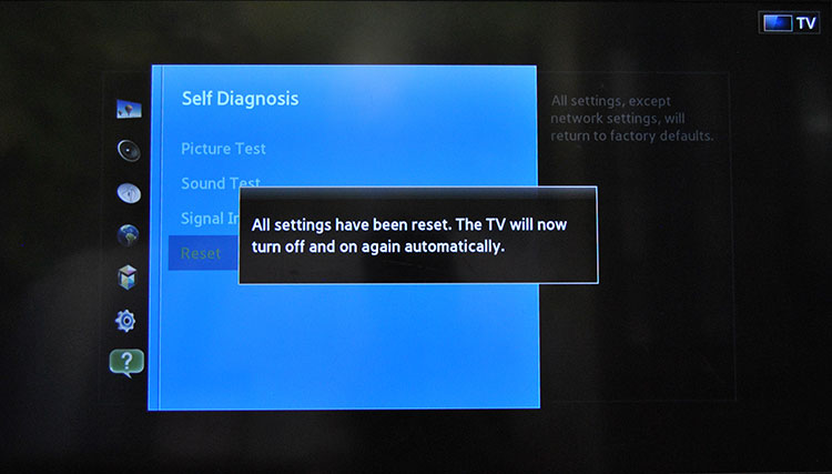 5. Wait for the reset to complete. Do not turn off the TV until you get the Reset complete.