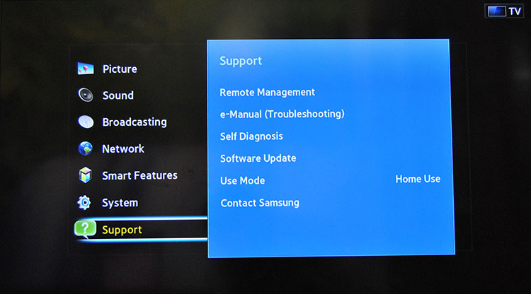 3. Slide down, find Support, and access it.access-support-samsung-smart-tv.