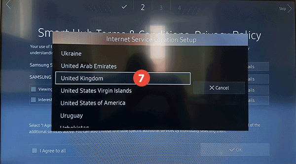 Depending on your Samsung Smart TV series, you can change your region as shown in the examples below.