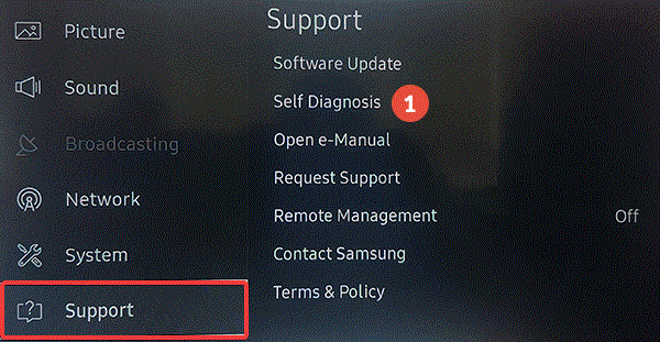 2. Go to Support and select Self Diagnosis.