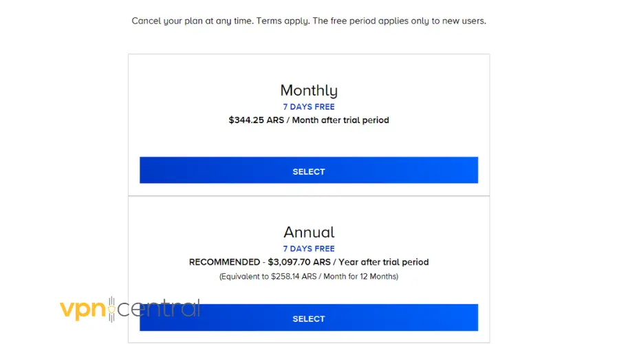 ❗Also, you cannot use another country’s card to pay for the service in Argentina. Therefore, you need to use a payment method or details that match your region.