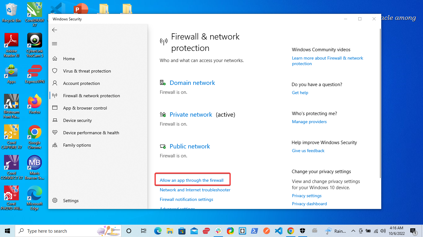 - Check the box under the type of network: either Private or Public, you want NordVPN to access.