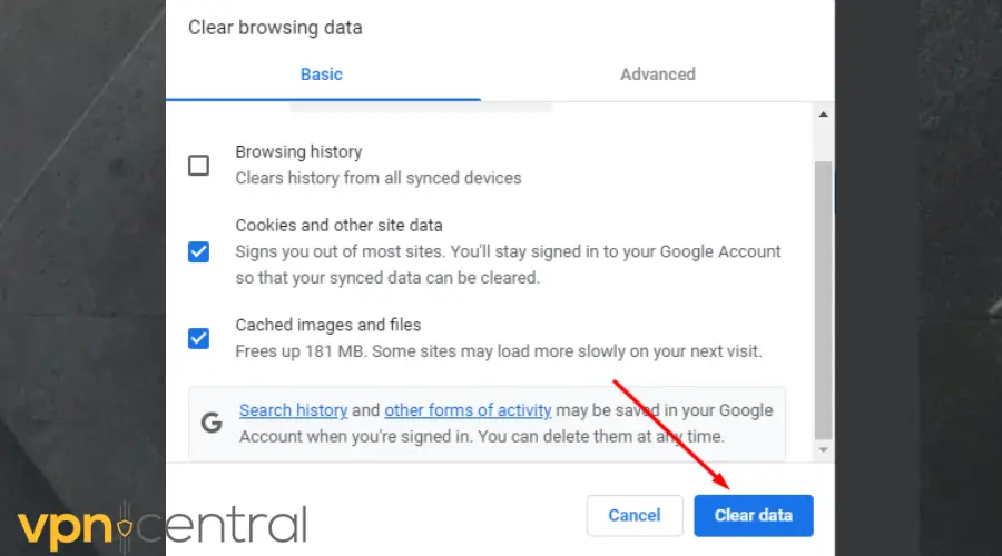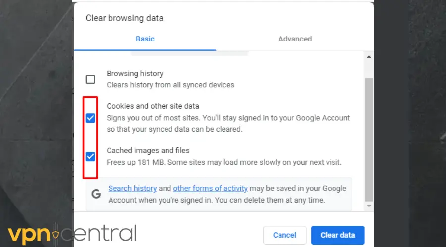 Although it improves your browsing experience, it can make a website determine your actual location even when you are using a VPN. So, we recommend you clear your cookies and cache frequently.