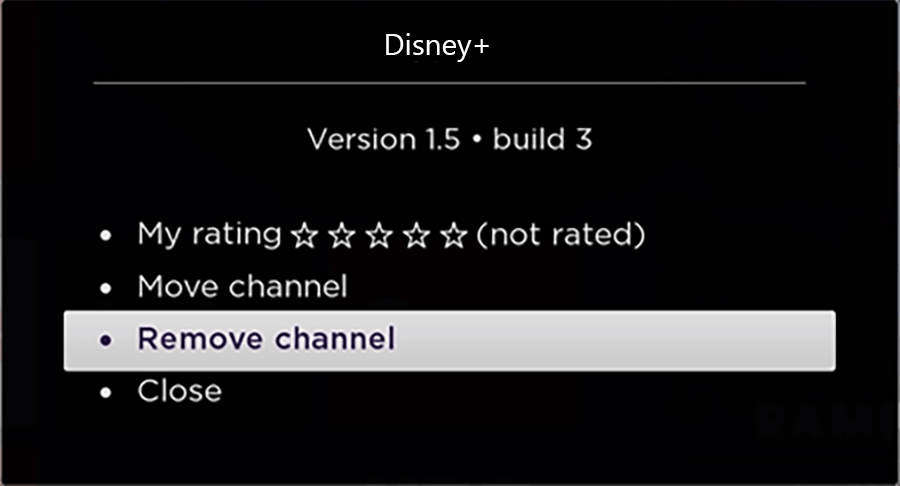 3. Choose Remove channel.disney plus channel remove roku