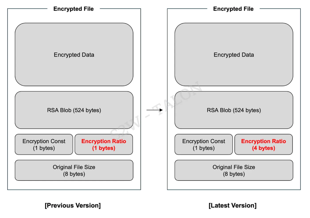 Security researchers note that the Encryption Ratio field expanded from one byte to four bytes, giving operators more granular control over file encryption strategies.