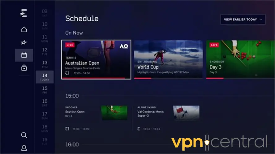 - Then launch your Eurosport. After switching servers, the Eurosport UK Player opened with no issues.