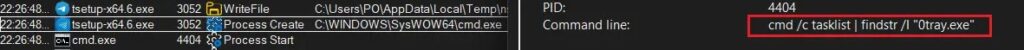Initial checkInstaller runs cmd.exe and looks for 0tray.exe to check prior infection