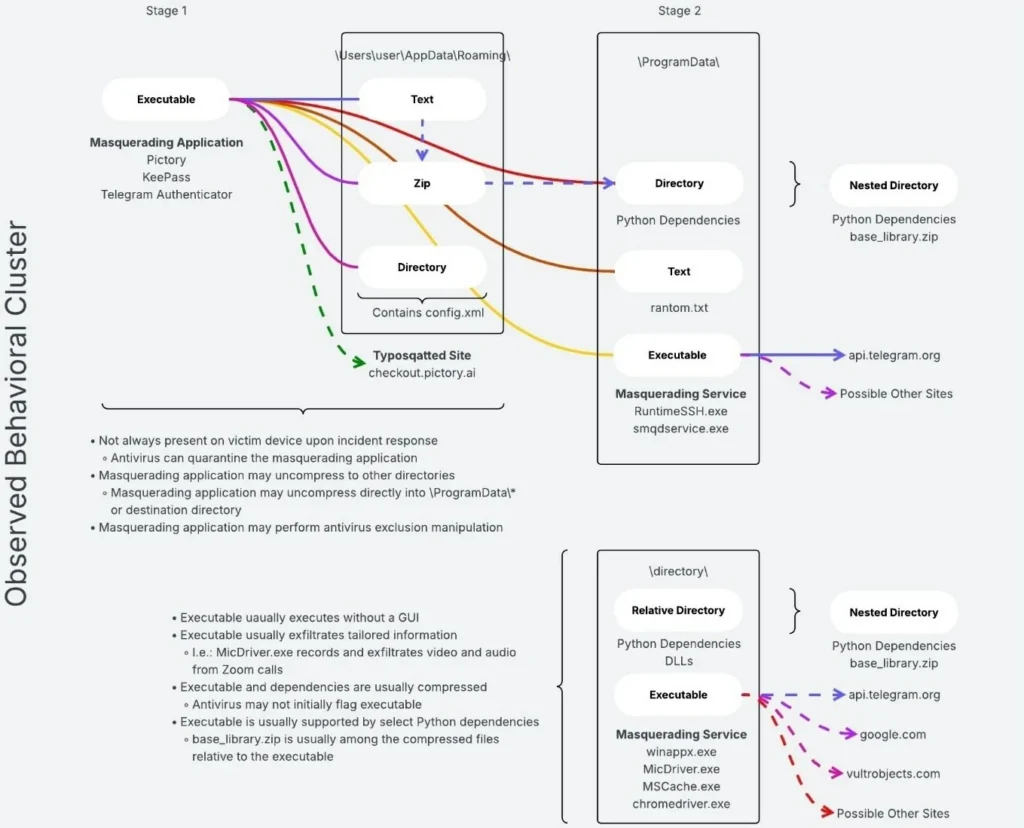 Once opened, the initial file launched a persistent implant on the Windows machine. The FBI said some samples masqueraded as well-known apps or services, including Telegram, KeePass, WhatsApp, and Pictory. The second stage then connected the infected device to Telegram-based infrastructure that enabled remote access and data theft.