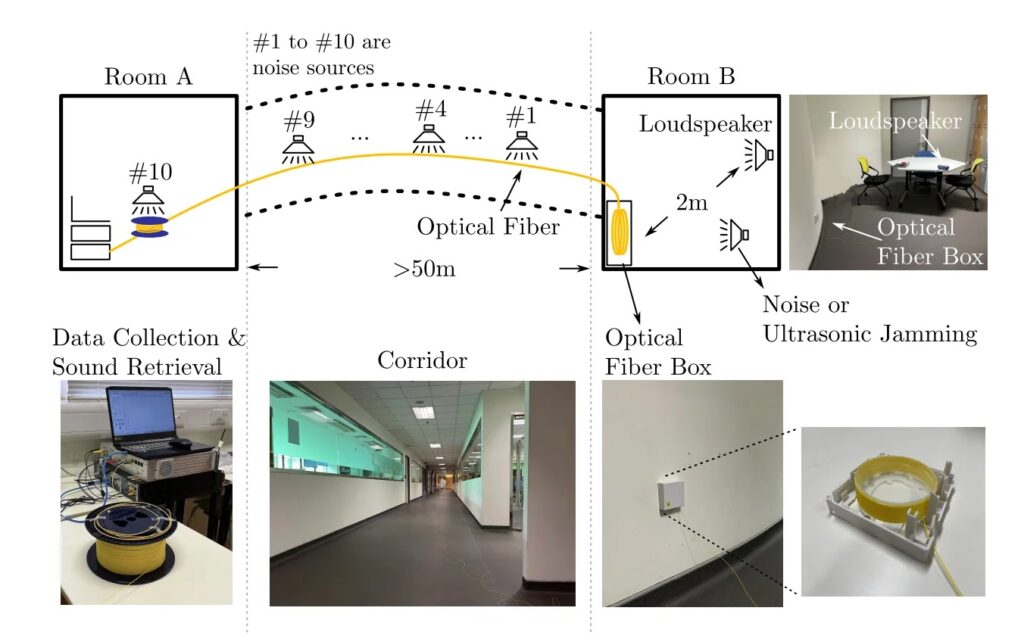 Another striking finding is that common ultrasonic jammers did not stop the fiber-based setup in the same way they disrupted regular microphones and voice recorders. In the presentation, the optical fiber system kept a low word error rate under jamming, while phones and compact recorders degraded sharply.