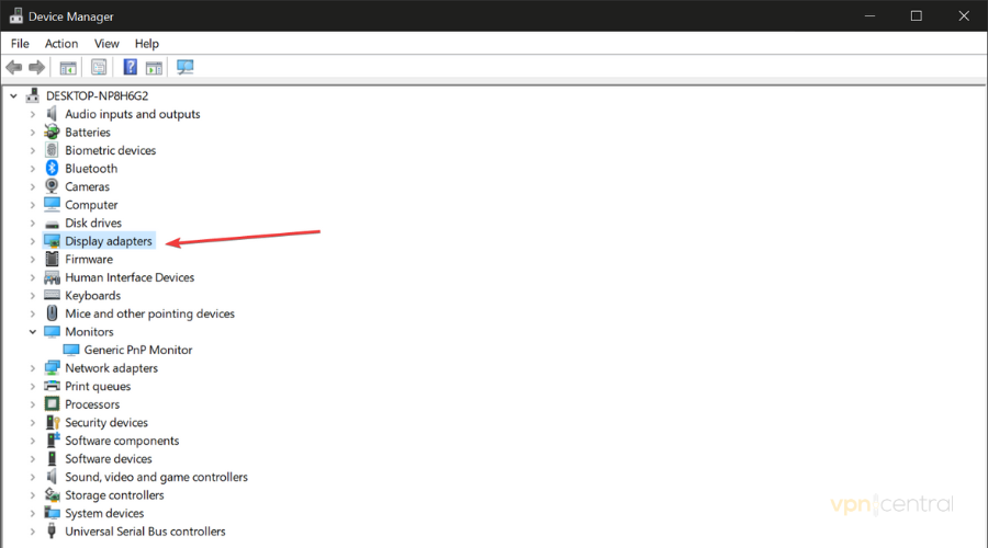 2. Locate the Display Adapters section.