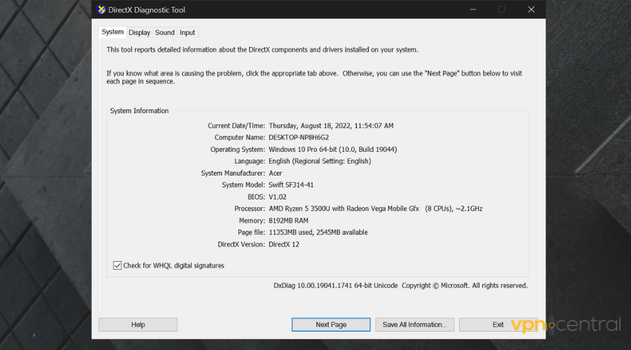 Certain tools, such as the DirectX Diagnostic Tool, enable you to check if your hardware is part of what is required to play the game. For you to have access to the tool, you should do the following:
