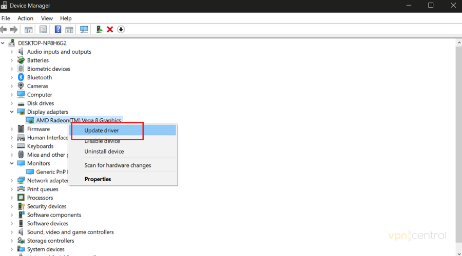 3. Expand it, right-click on your Graphics card driver, and select Update.