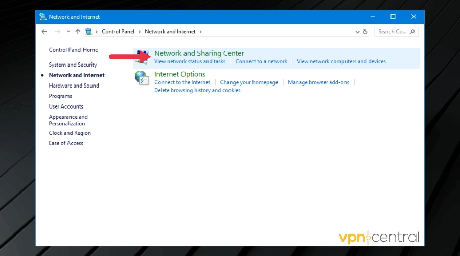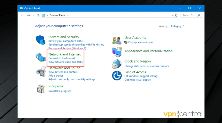 - Click Network and Internet.