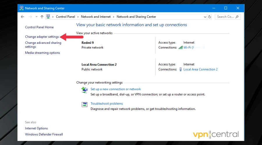 - Click Change Adapter Settings.