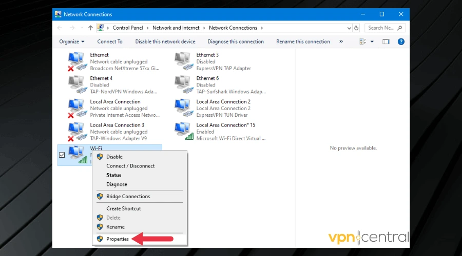 - Right-click on your active connection and select Properties.