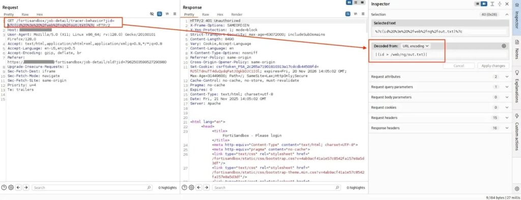 | in the jid parameter(source : GitHub)Teams should also review web and application logs for unusual requests targeting FortiSandbox API endpoints, especially around the disclosure date and after the public PoC appeared. Fortinet does not currently say the flaw is known to be exploited, but that status can change quickly once exploit code is public.