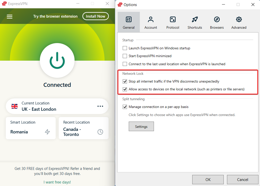 - Go to Options and in the General tab make sure the Network Lock is checked on both boxes.