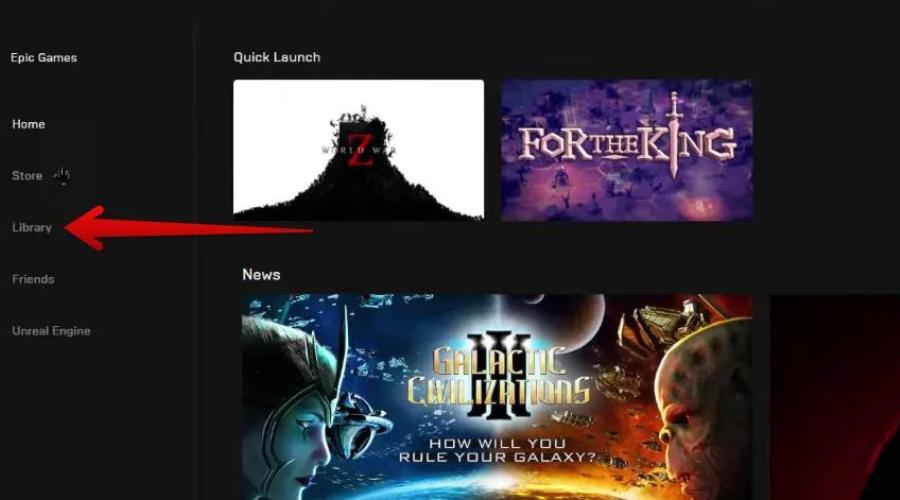 - Launch the Epic Games Launcher and go to the Library on the left pane.