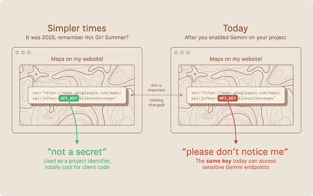 Google once told developers to embed AIza… keys openly in JavaScript. Firebase docs called them non-secrets for billing. Maps guides said paste them publicly. That advice dates back years. No alerts come when Gemini activates. Old keys inherit access instantly.