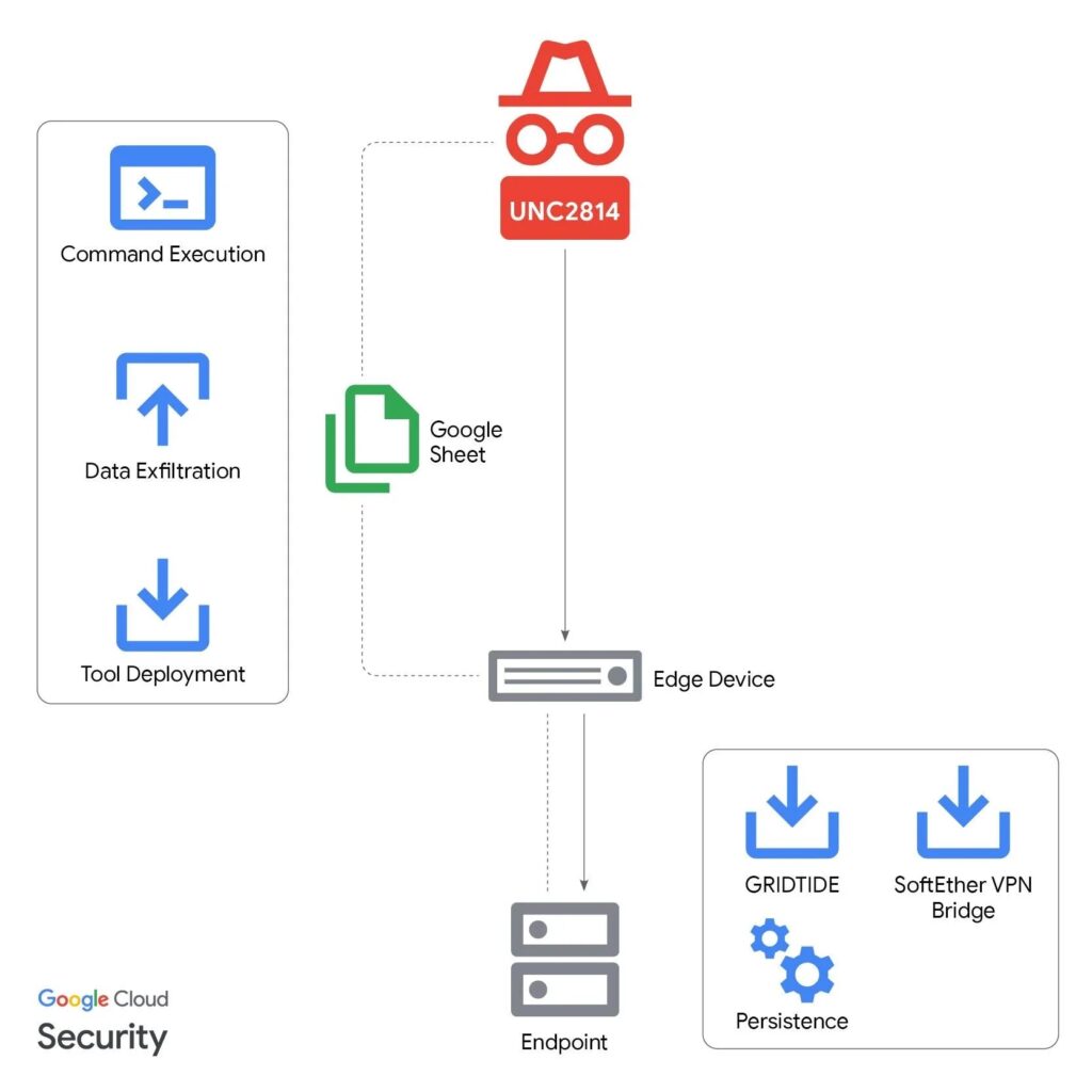 Google Cloud Blog states: “We disrupted GRIDTIDE, a global espionage campaign by UNC2814.”