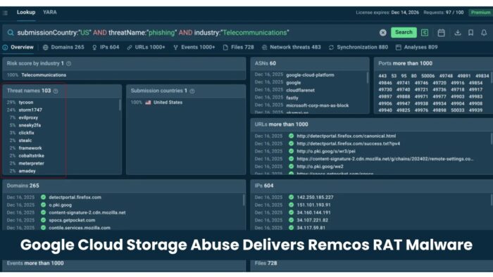 Threat actors are using Google Cloud Storage URLs to host fake Google Drive pages, steal login details, and then deliver Remcos RAT to Windows systems. Researchers at ANY.RUN said the campaign uses storage.googleapis.com pages to make phishing links look trustworthy enough to dodge some reputation-based checks in email and web security tools.