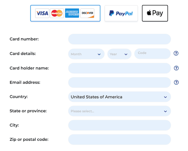 The payment methods available are: