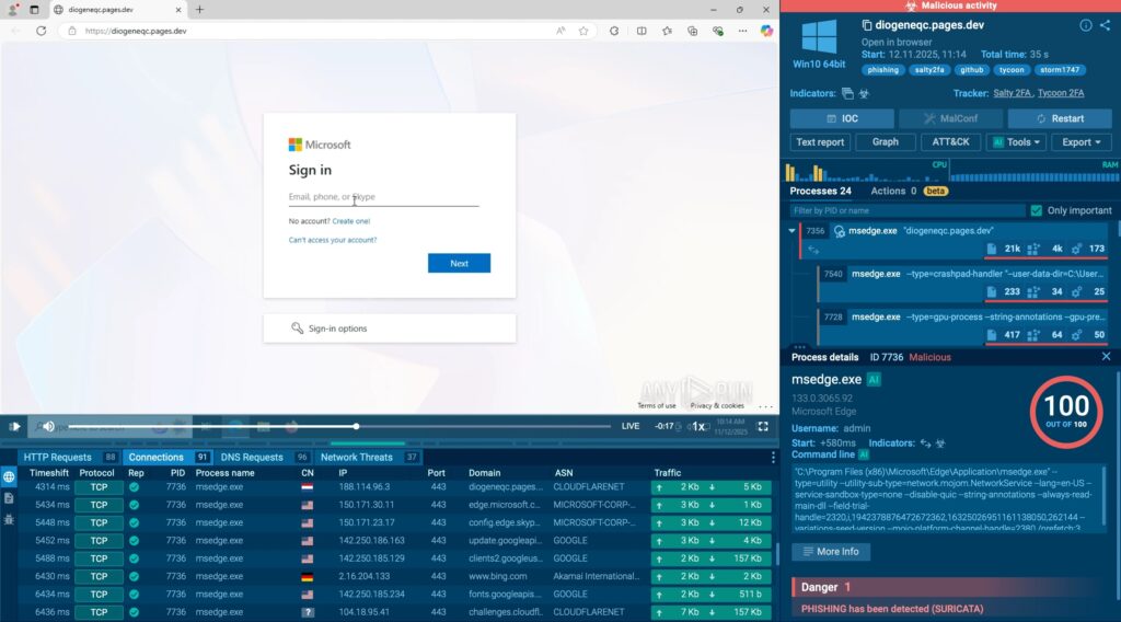 ANY.RUN analyzed a phishkit in 35 seconds. It exposed Salty2FA and Tycoon 2FA chains.
