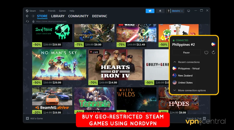NordVPN boasts 6,000+ servers in about 110+ countries. With such coverage, you can confidently purchase any Steam game.