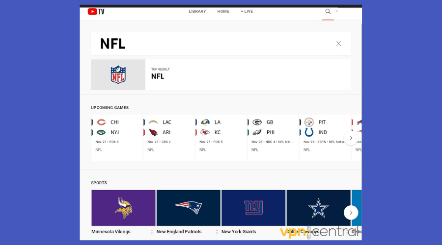 We picked YouTube TV, but the same process works for all the streaming platforms that support NFL. If you want to get an NFL Game Pass account to keep up with all the NFL events, you can use a VPN to get access to the platform from Qatar.