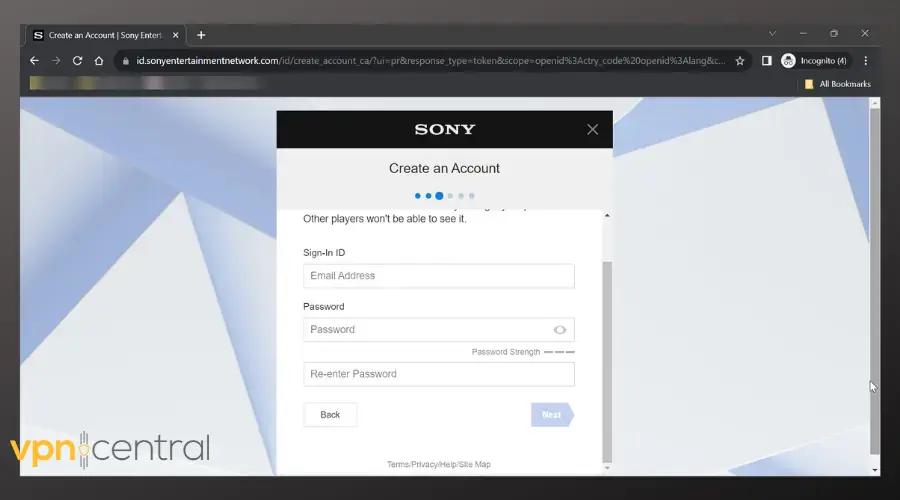 - Go to sony.com to create a new account. I suggest using