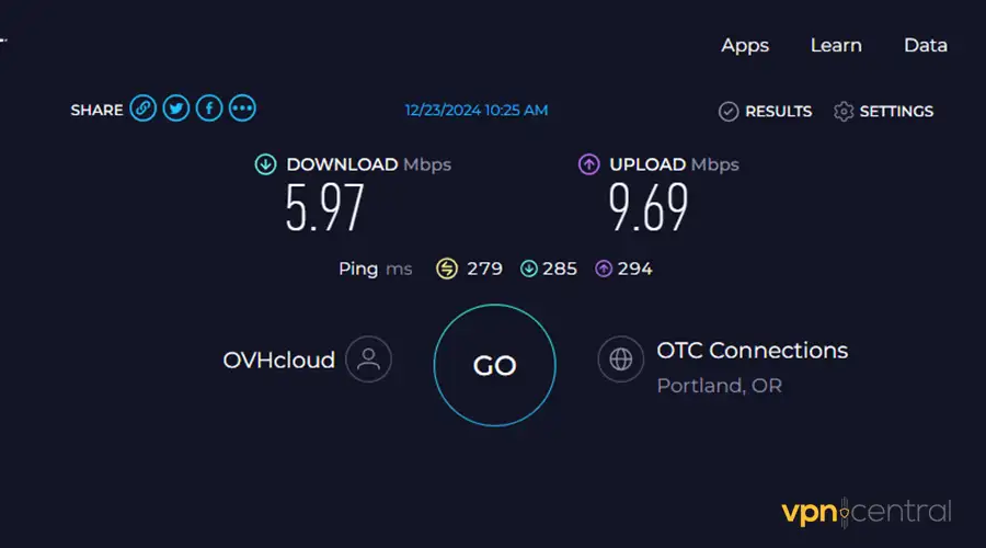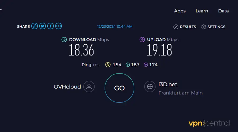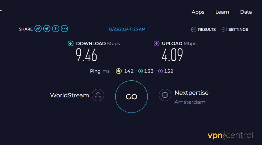 Germany is the fastest server region. Still, it’s about 25% slower than when I’m not using a VPN.