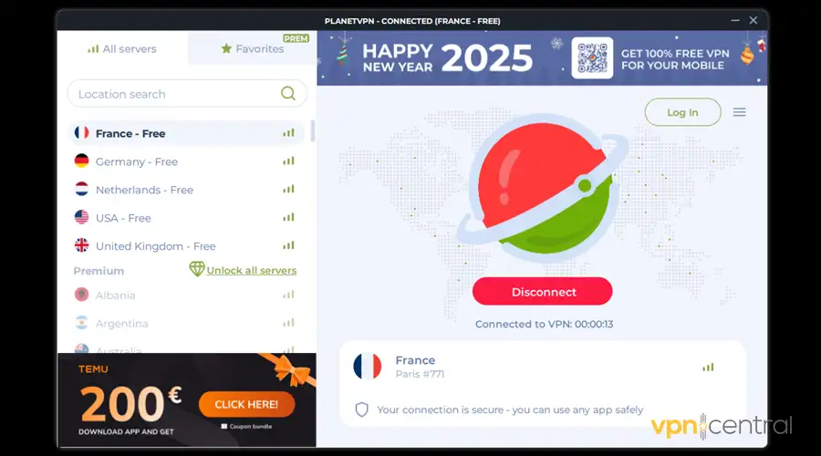 • Ad-supported free version: Planet VPN displays ads to free users of its service. However, they appear on the app, causing no interference with browsing.