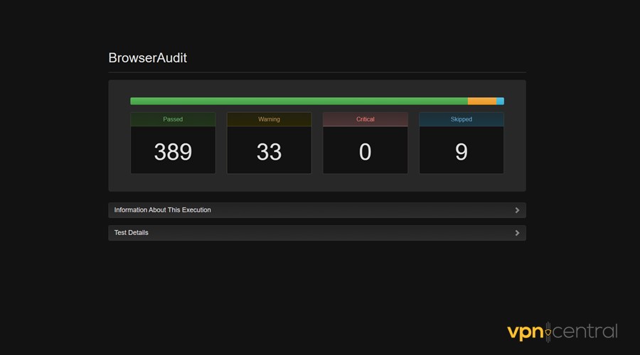 So I ran all of BrowserAudit’s tests to assess whether the XNXUBD VPN browser is clean. Despite the extensive checks, I couldn’t find any critical flaws or high-risk vulnerabilities.