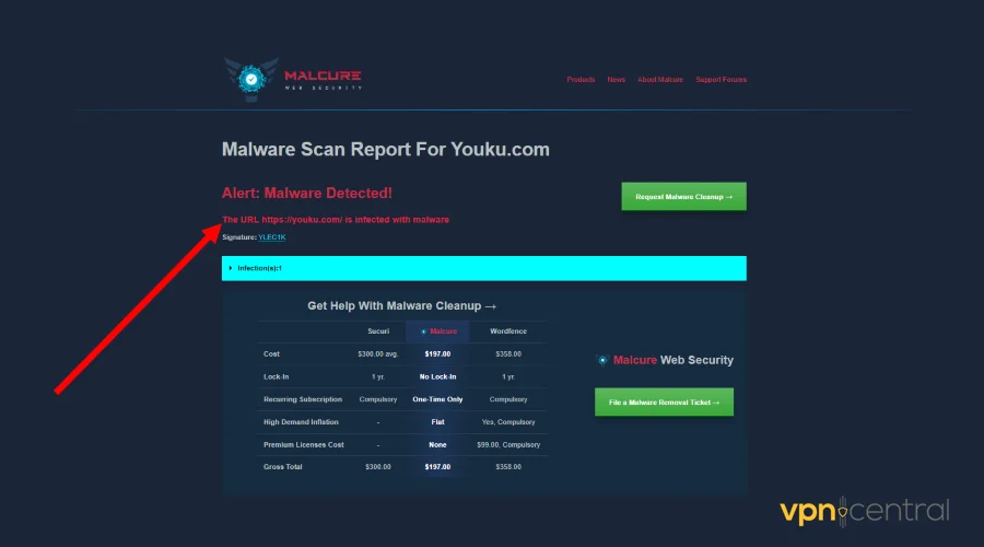 I had to run several checks to determine whether YouKu is safe for users. The process comprised employing tools like VirusTotal, Malwarebytes, and Malcure.Â